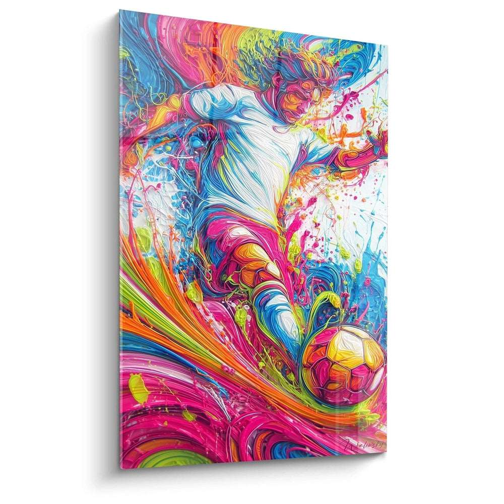 Dieses beeindruckende abstrakte Wandbild entführt Sie in eine Welt der puren Farbenfreude und dynamischen Bewegung. Die explosive Komposition vereint leuchtende Pinktöne, tiefes Blau, strahlendes Orange und elektrisches Grün in einem wirbelnden Tanz der Farben. Die fließenden Linien und organischen Formen scheinen sich vor Ihren Augen zu bewegen und schaffen eine hypnotische Wirkung, die jeden Betrachter in ihren Bann zieht. Weiße Bereiche dienen als Ruhepole und verstärken die Leuchtkraft der intensiven Farben. Die meisterhafte Verschmelzung verschiedener Texturen und Farbschichten erzeugt eine dreidimensionale Tiefe, die das Bild lebendig wirken lässt. Spritzer und feine Details verleihen dem Werk eine spontane, expressionistische Note, während die großen Farbflächen für Balance und Harmonie sorgen. Diese moderne Wandkunst transformiert jeden Raum in eine Galerie zeitgenössischer Kunst und regt die Fantasie an.