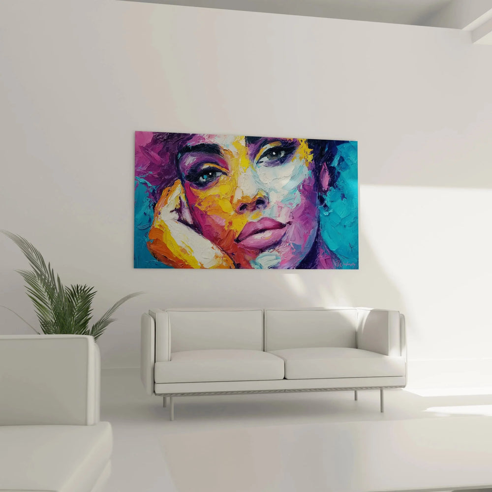 Wandbild Abstrakte Frau - Farbexplosion Portrait - Edition Mode-Gesicht