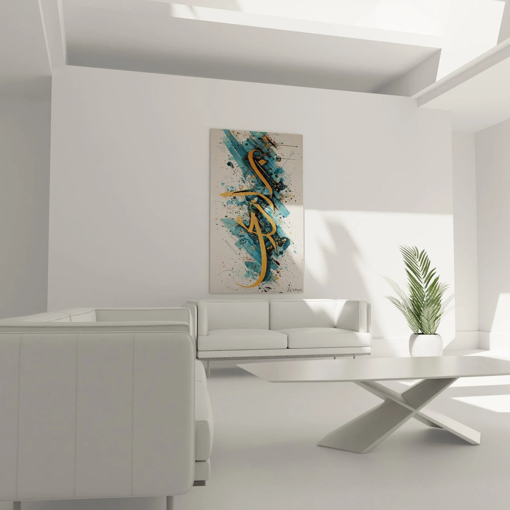 Wandbild Abstrakte Kalligrafie - Goldene Schriftzeichen - Edition Abstrakte Landschaft
