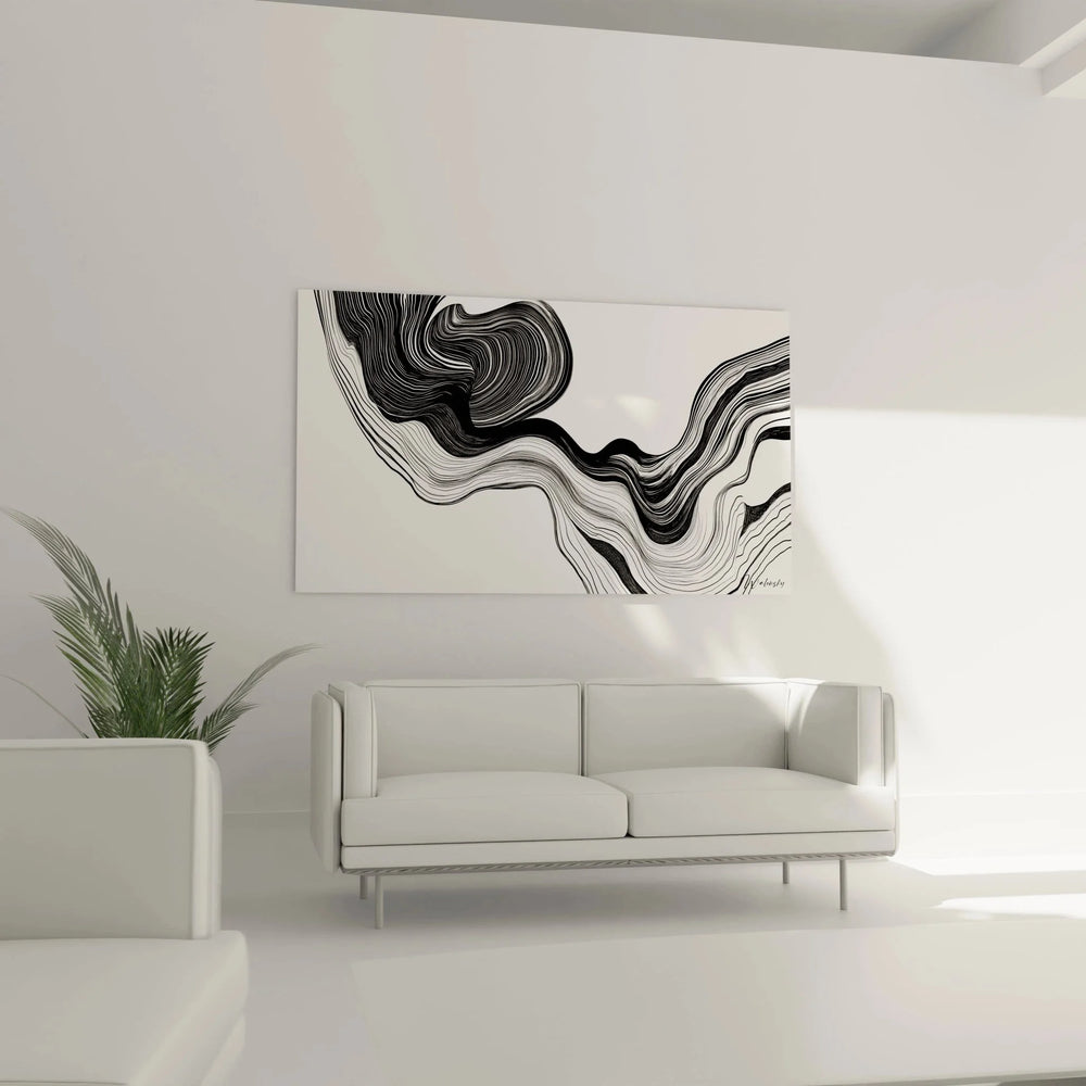 Wandbild Abstrakte Linien - Schwarz-Weiße Strömung - Edition Schwarz-Weiß-Streifen