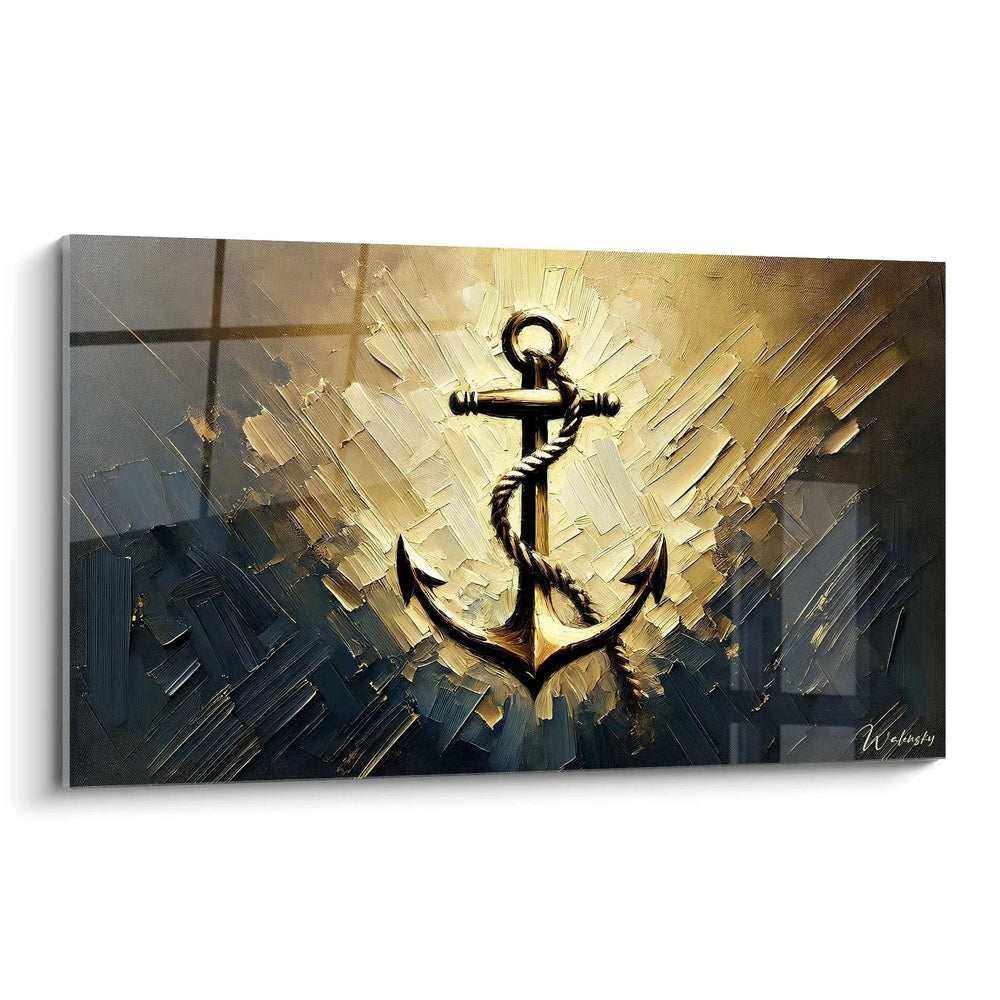 Wandbild Anker - Goldenes Seefahrer-Symbol - Edition Ozean