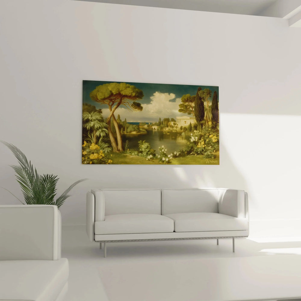 Wandbild Antike Landschaft - Arkadische Idylle mit antikem Tempel - Edition Neoklassizismus
