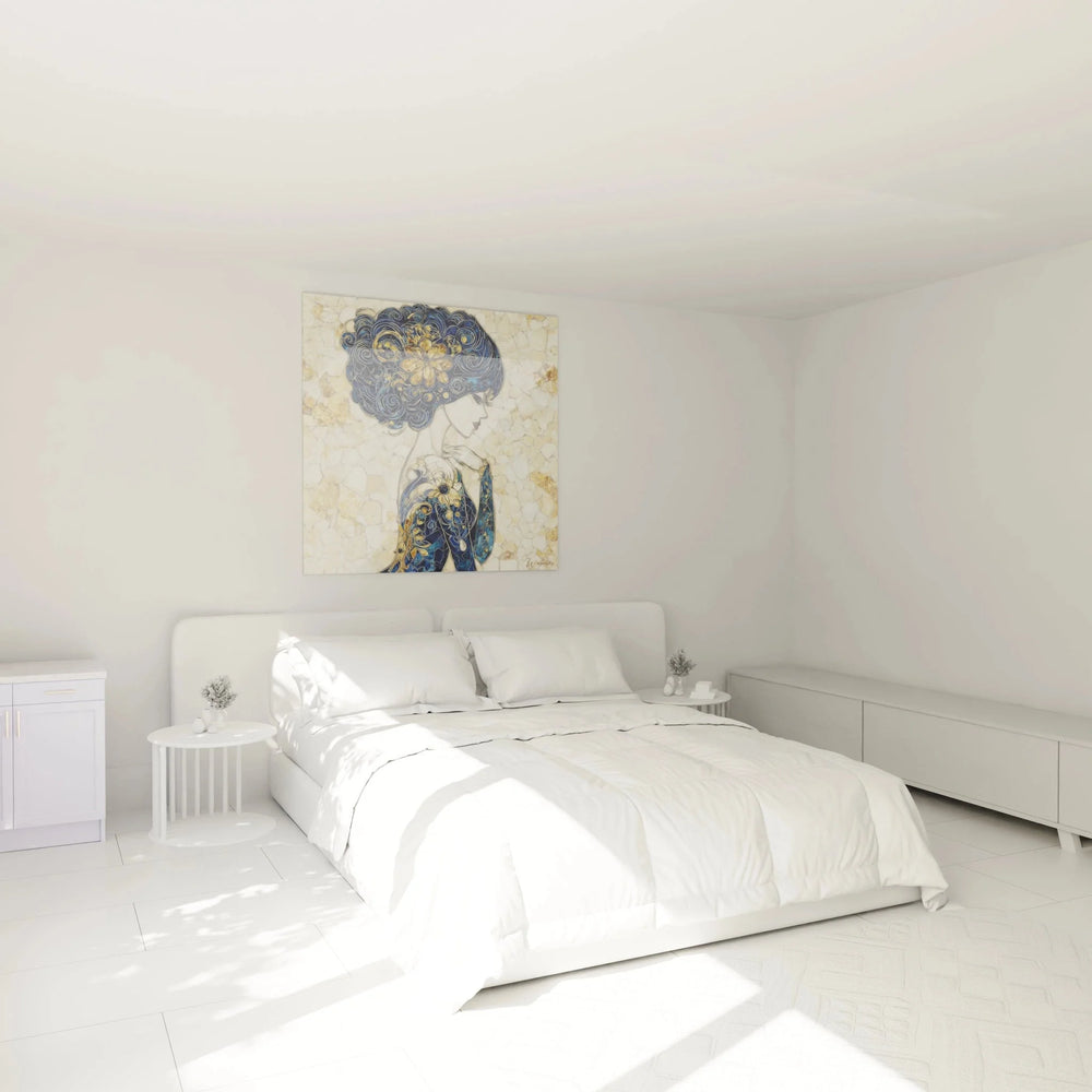 Wandbild Art Nouveau Frau mit ornamentalen Haaren - Blaue Eleganz - Edition Weibliche Schönheit