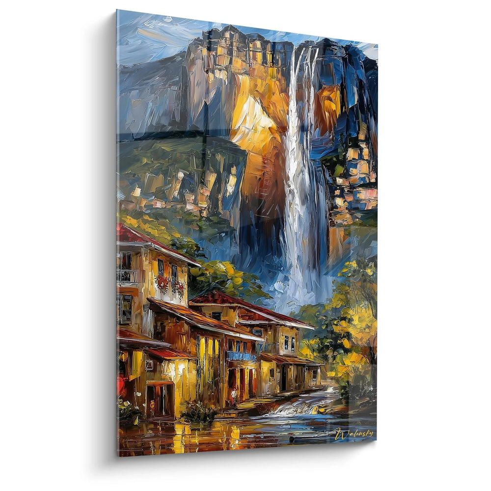 Wandbild Bergdorf mit Wasserfall - Malerische Alpenidylle - Edition Wasserfall
