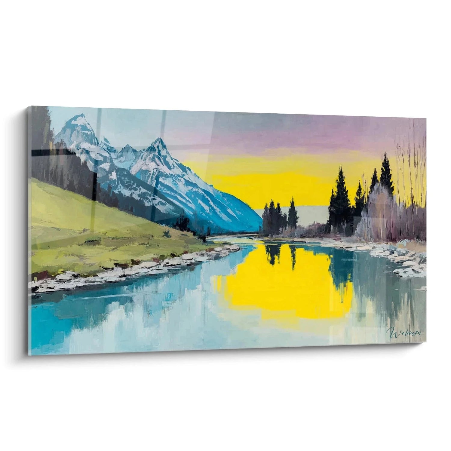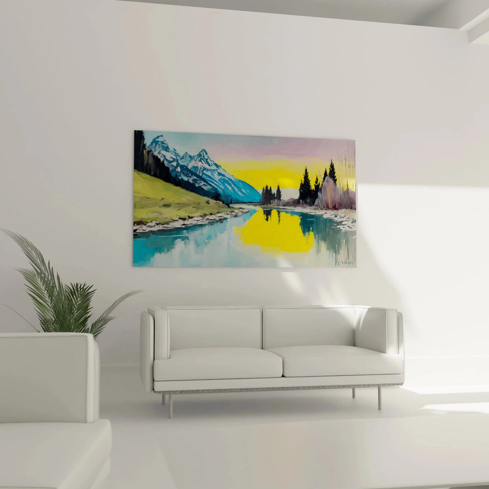 Wandbild Berglandschaft - Sonnenuntergang am Gebirgssee - Edition Impressionismus