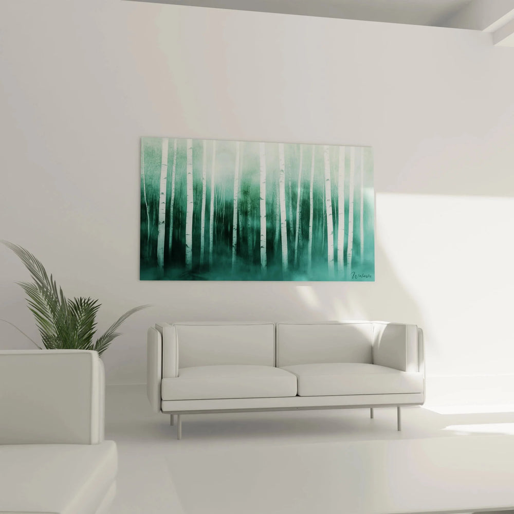 Wandbild Birkenwald - Nebelhafte Waldstimmung - Edition Wald