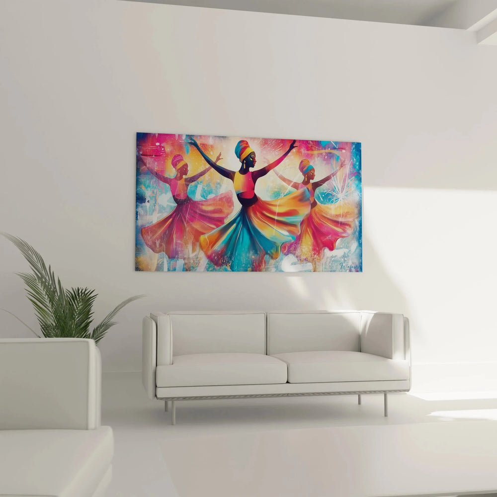 Wandbild Drei tanzende Frauen - Farbexplosion der Lebensfreude - Edition Afrikanischer Tanz