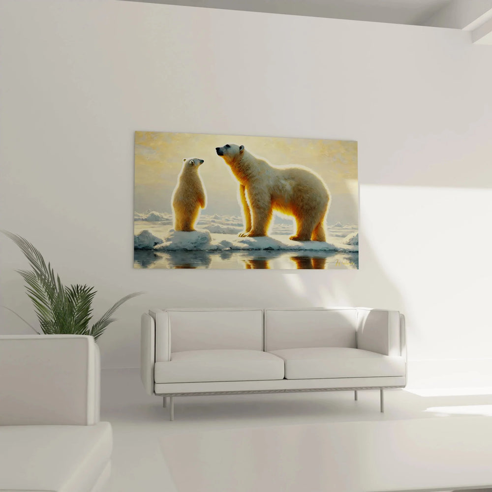 Wandbild Eisbär Familie - Arktische Harmonie im Goldlicht - Edition Eisbär