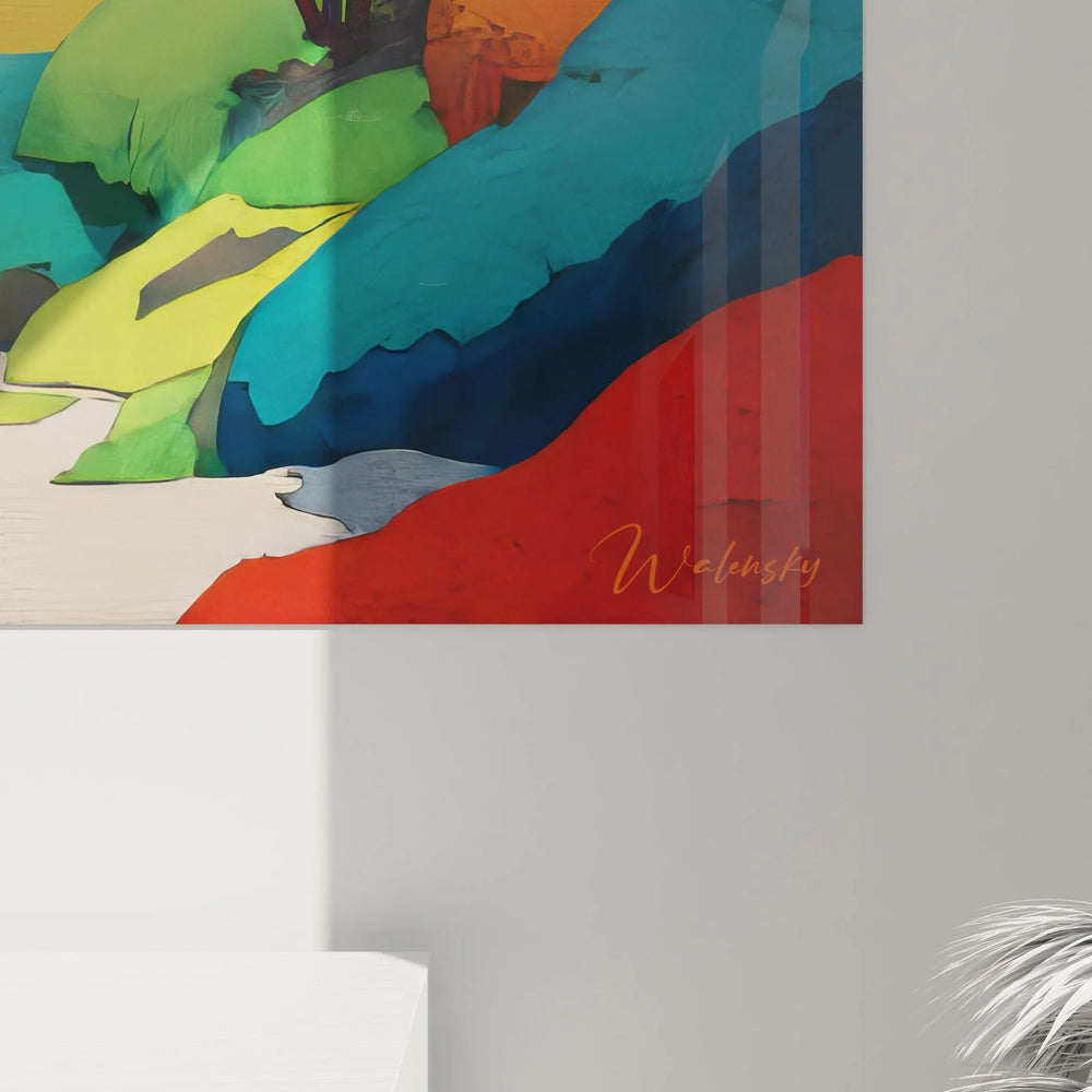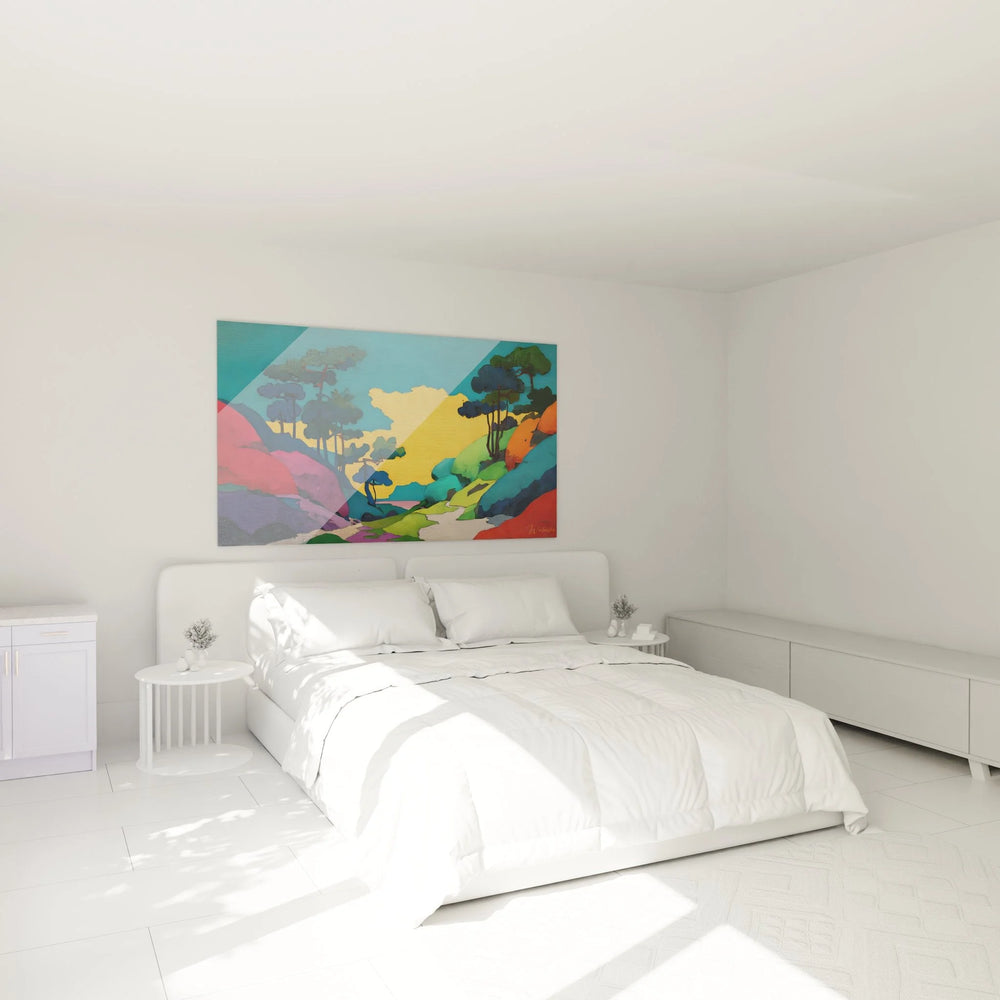 Wandbild Fantasielandschaft - Bunte Bergwelt mit Bäumen - Edition Andere Landschaften