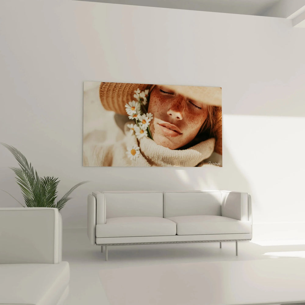 Wandbild Frau mit Gänseblümchen - Sommerträume - Edition Sommer