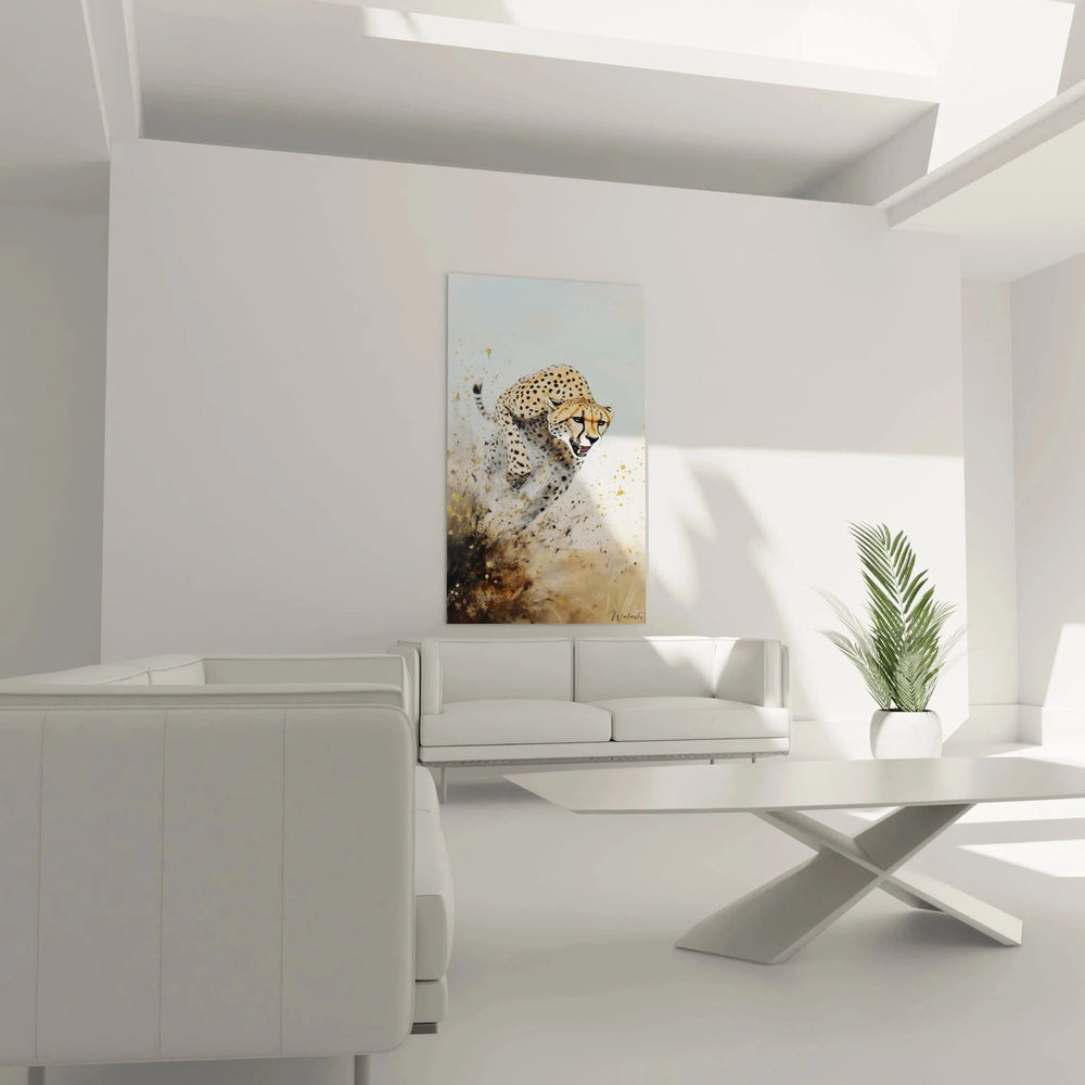 Wandbild Gepard - Sprung durch den Staub - Edition Gepard