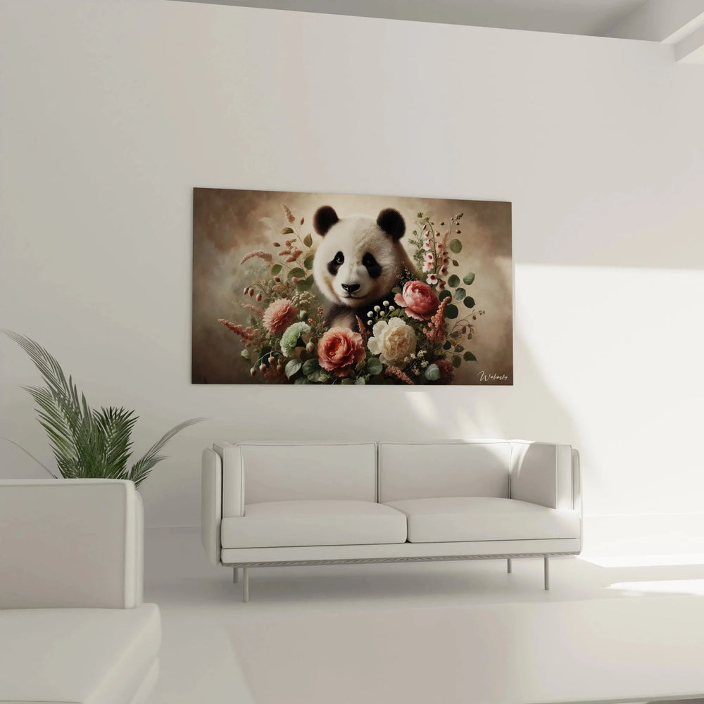 Wandbild Großer Panda mit Blumen - Romantische Vintage Komposition - Edition Großer Panda