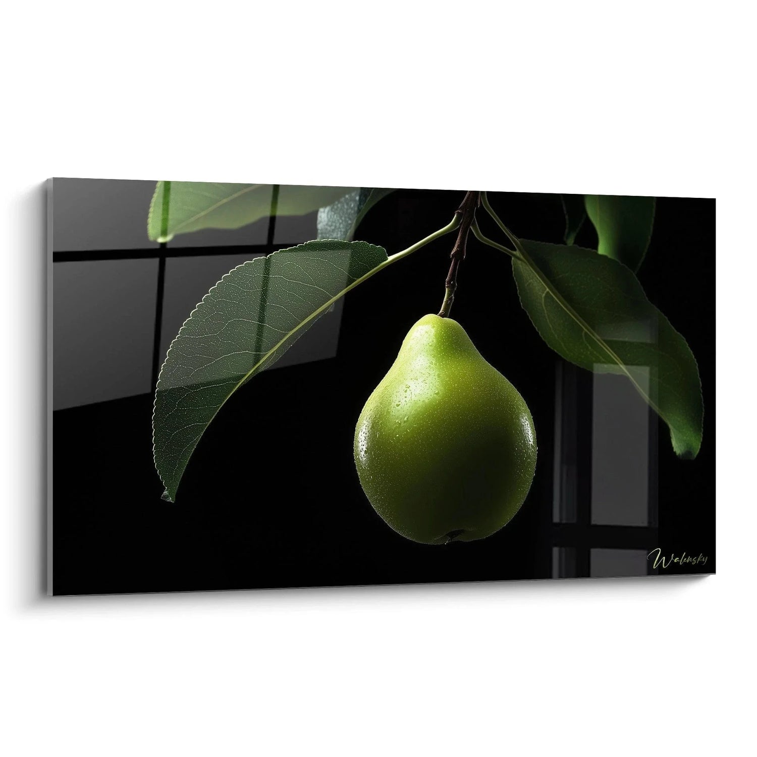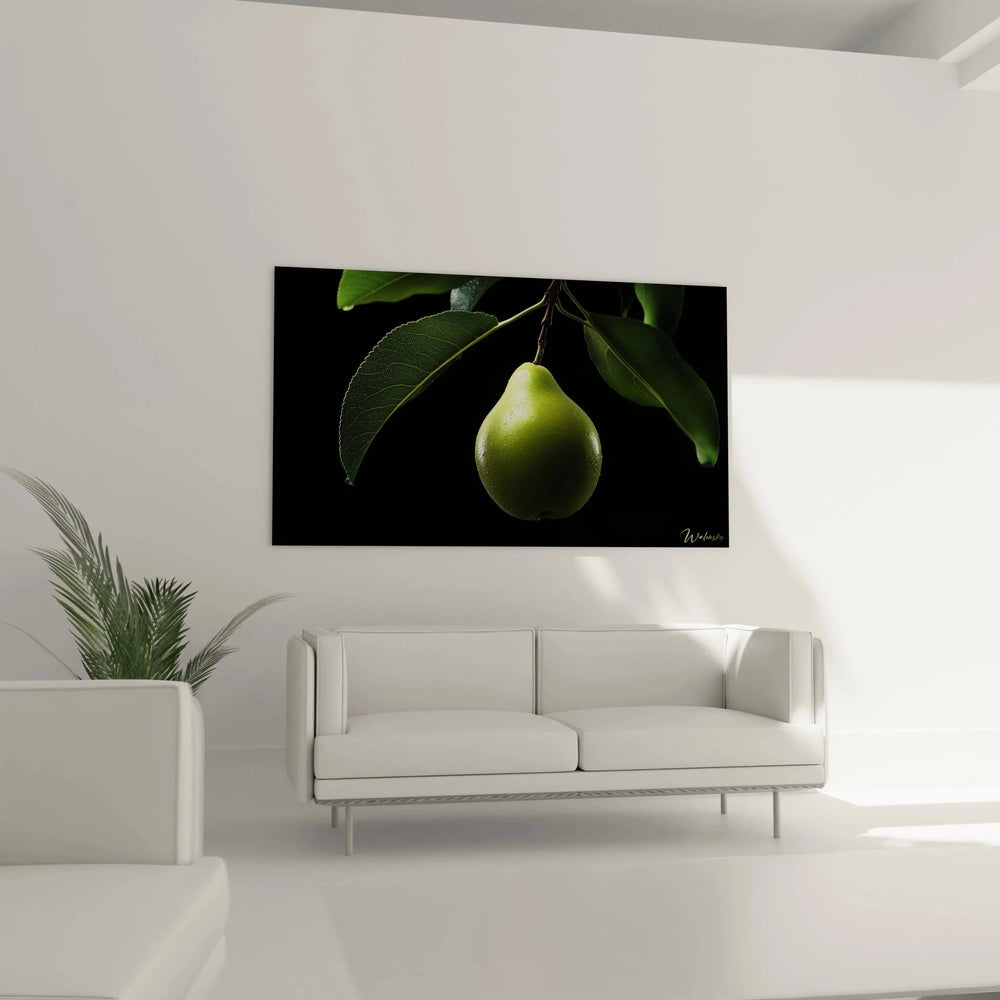 Wandbild Grüne Birne - Natürliche Eleganz am Zweig - Edition Andere Früchte