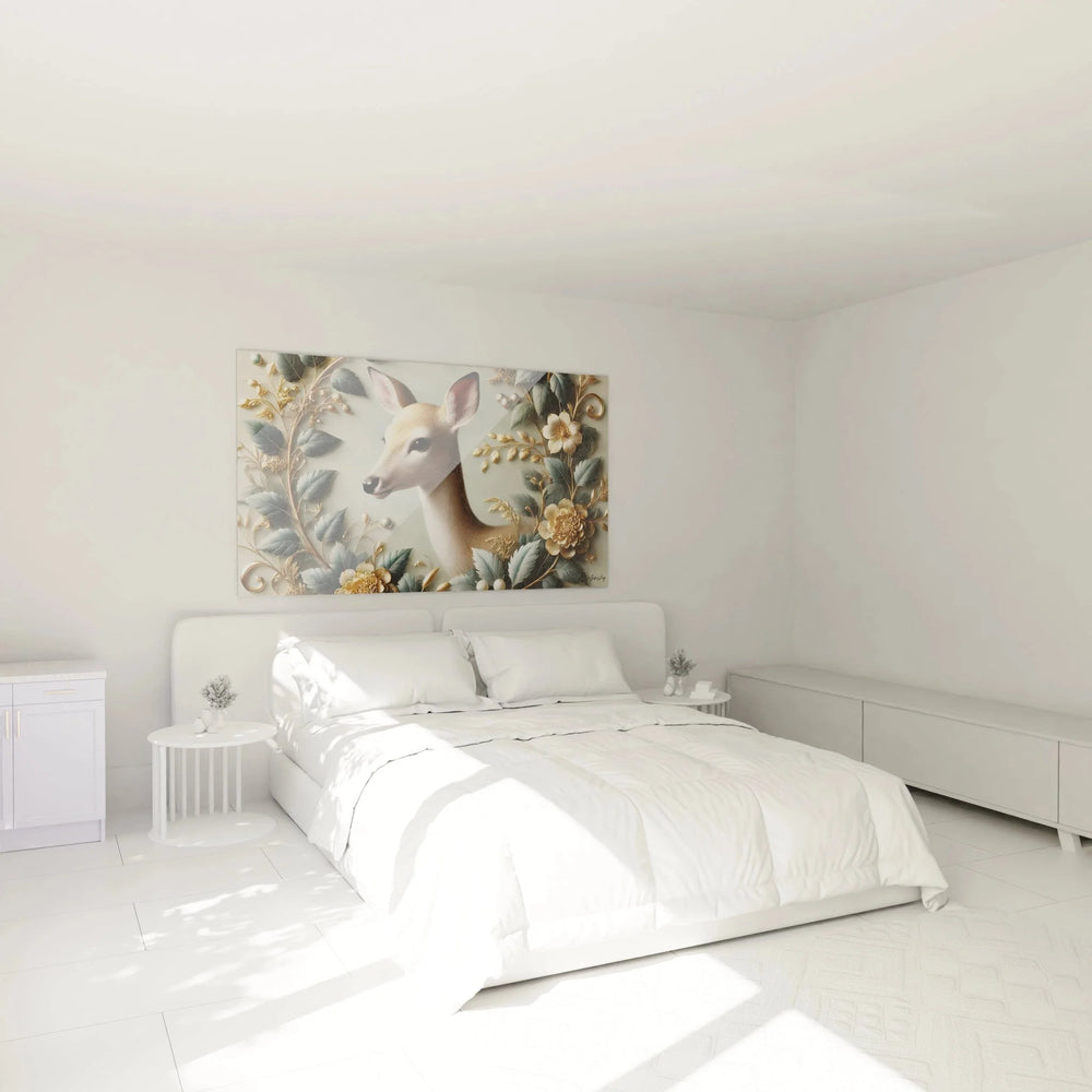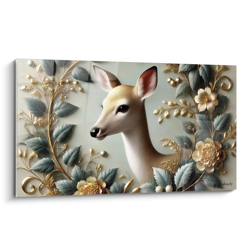 Wandbild Hirschkuh mit goldenen Blüten - Elegante Waldschönheit - Edition Hirschkuh