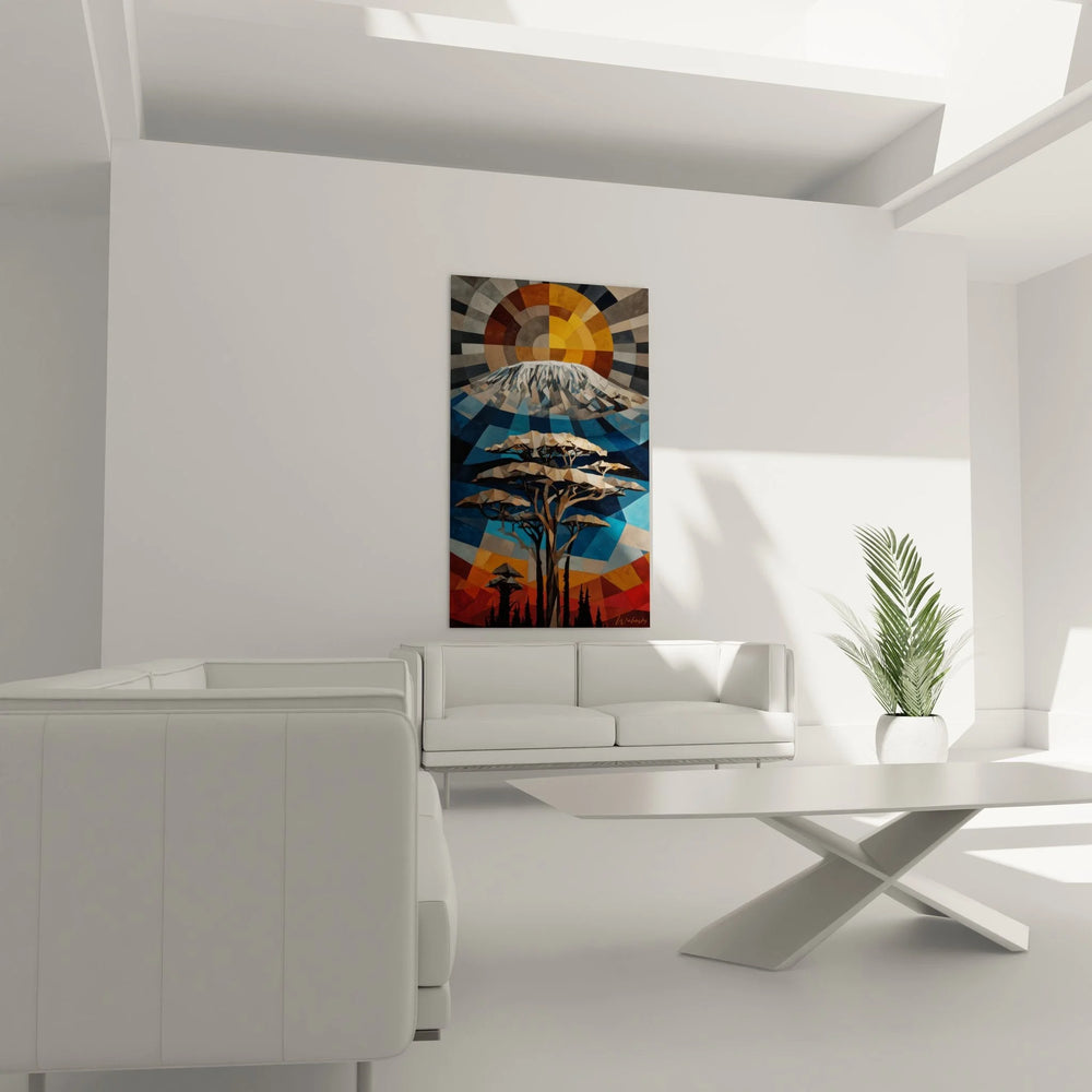 Wandbild Kilimandscharo - Geometrische Berglandschaft mit Savanne - Edition Berg