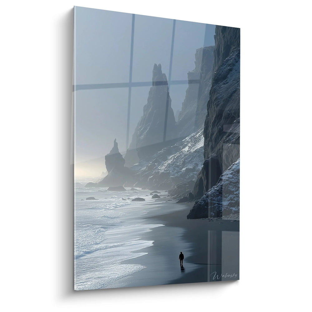 Wandbild Küste - Einsamer Wanderer am dramatischen Strand - Edition Strand