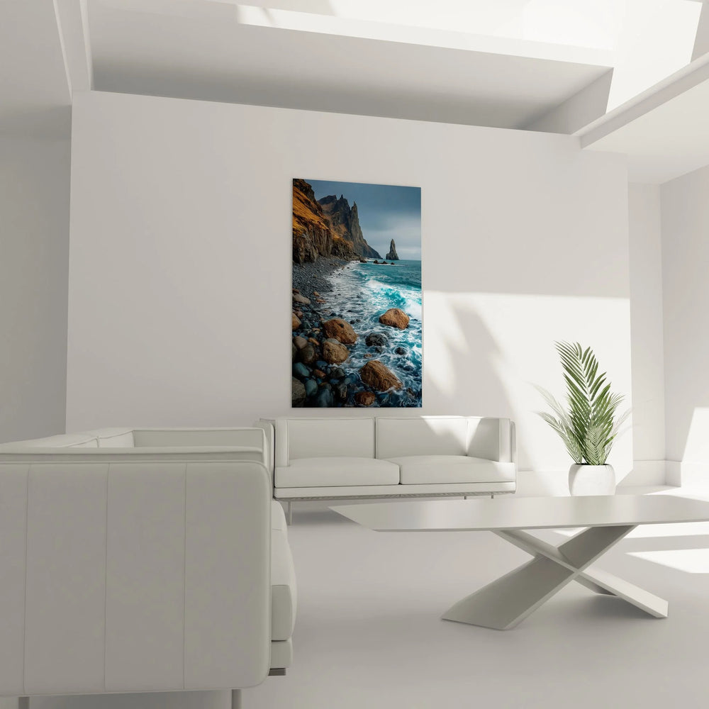 Wandbild Küstenlandschaft - Dramatische Felsküste mit türkisblauem Meer - Edition Strand
