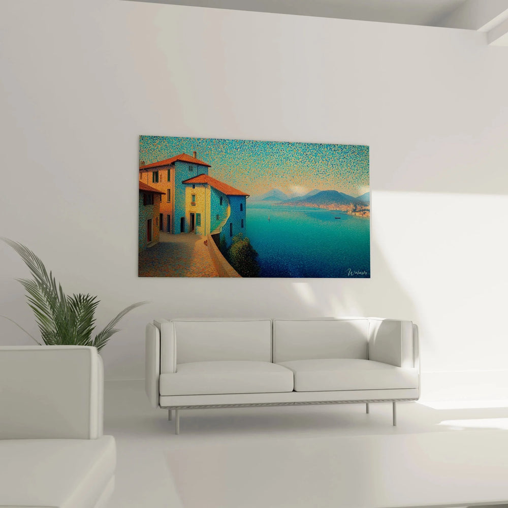 Wandbild Küstenstadt - Mediterrane Bucht im Pointillismus - Edition Pointillismus