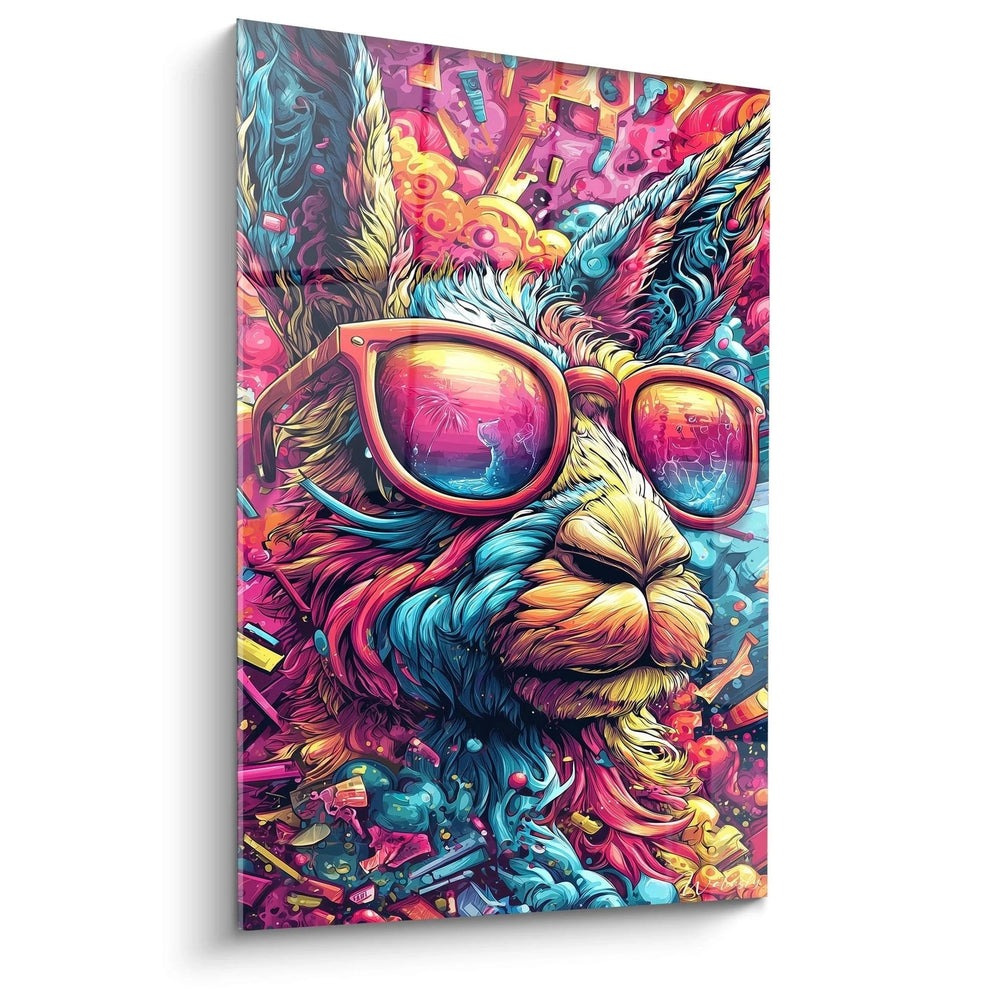 Wandbild Lama mit Sonnenbrille - Psychedelisches Alpaka - Edition Farbexplosion