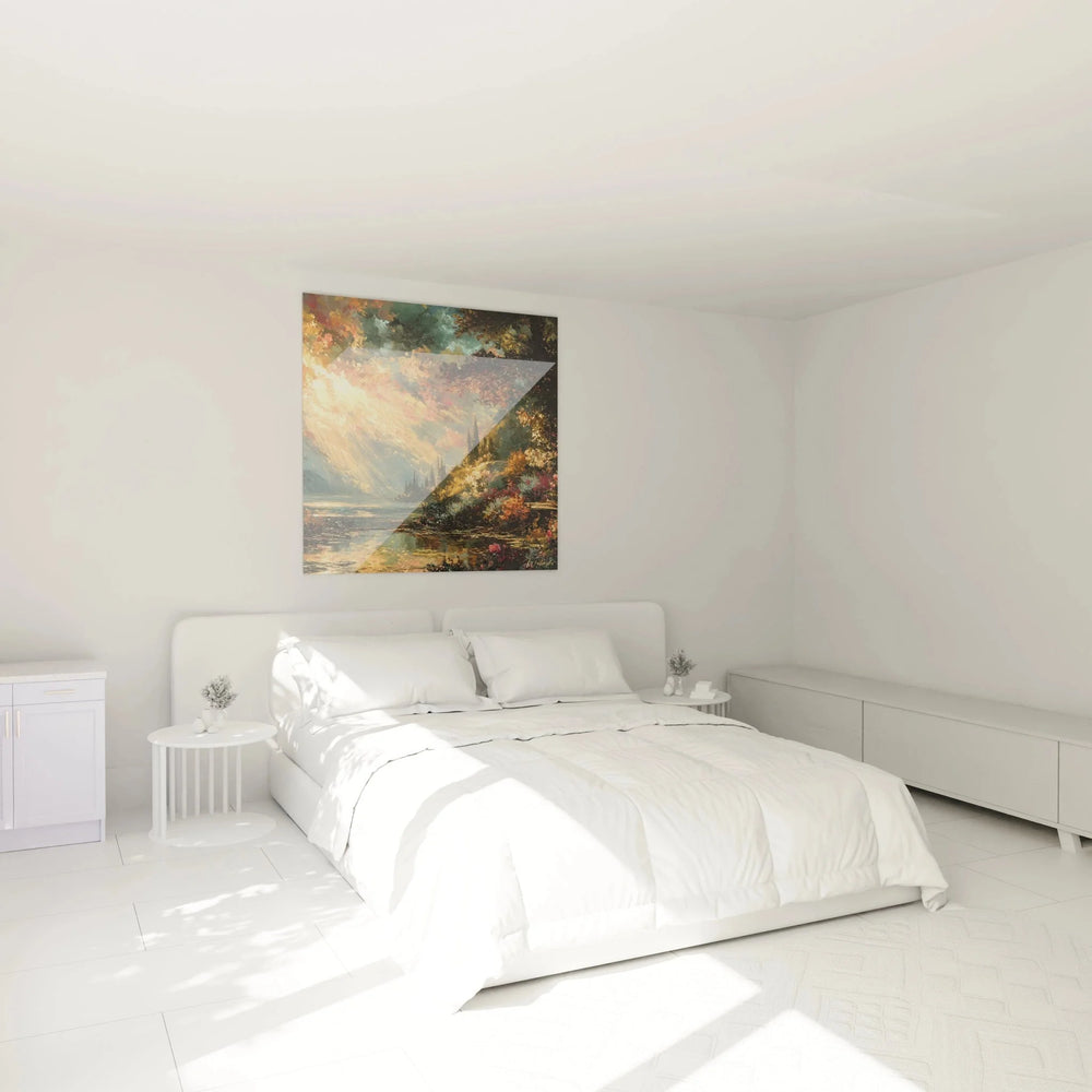 Wandbild Landschaft - Dramatischer Sonnenstrahl durch Herbstbäume - Edition Gotik
