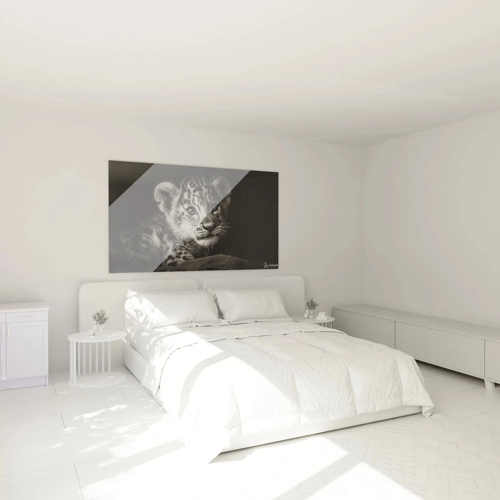 Wandbild Leopardenbaby - Unschuldiger Blick - Edition Tiere schwarz-weiß