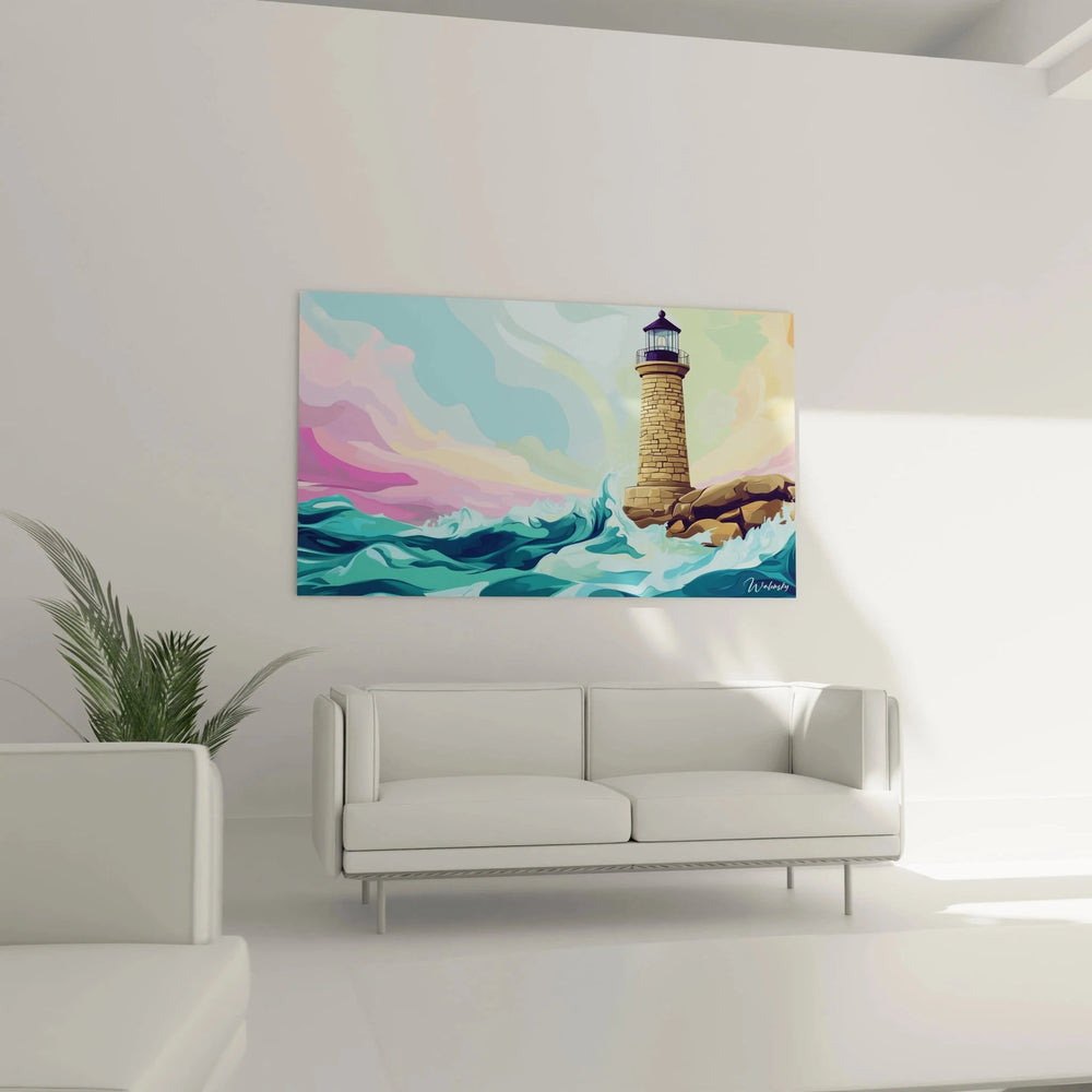 Wandbild Leuchtturm - Bunte Sturmnacht am Meer - Edition Leuchtturm
