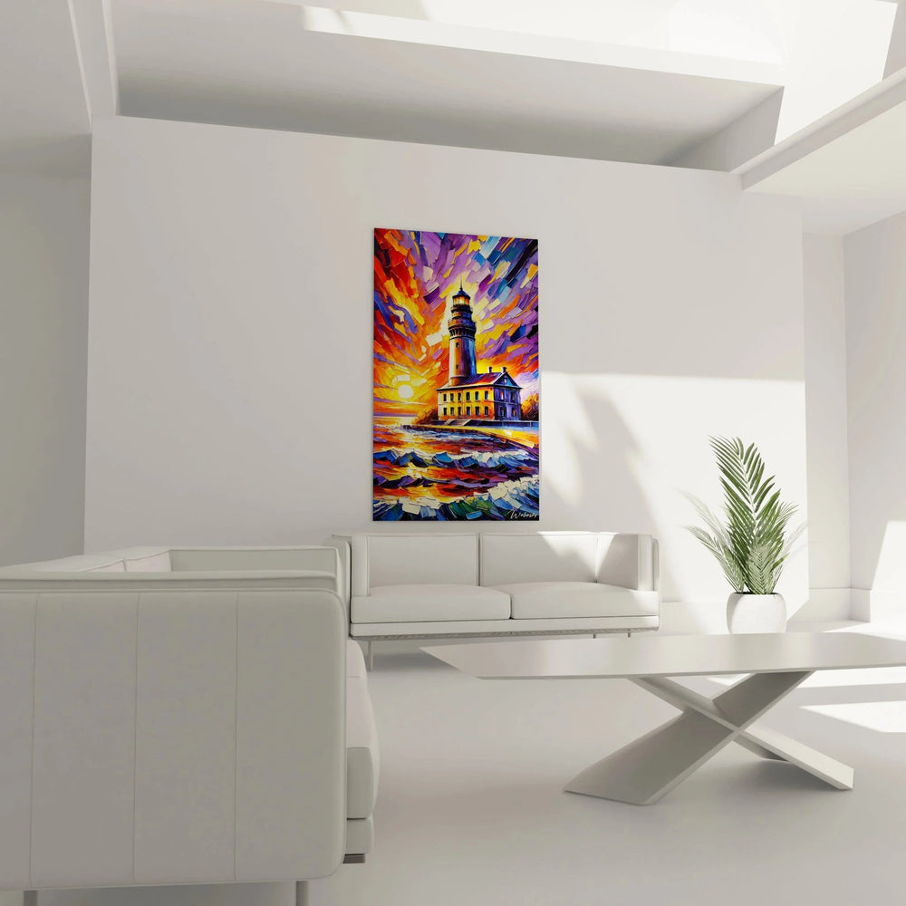 Wandbild Leuchtturm - Dramatischer Sonnenuntergang - Edition Fauvismus