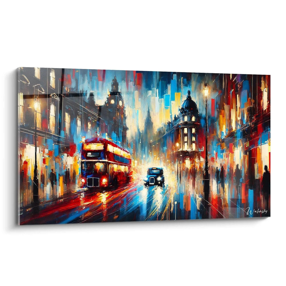 Wandbild London Straßenszene - Expressionistische Stadtansicht mit rotem Doppeldeckerbus - Edition England