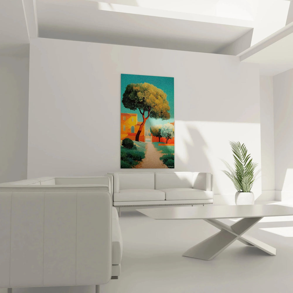 Wandbild Mediterrane Landschaft - Tuskanisches Dorf - Edition Pointillismus