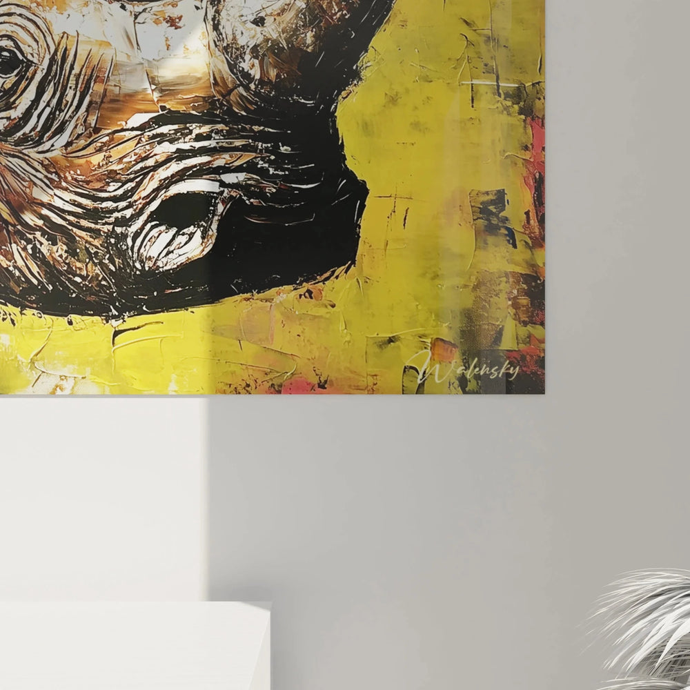 Wandbild Nashorn - Kraftvoller Koloss auf gelbem Hintergrund - Edition Nashorn