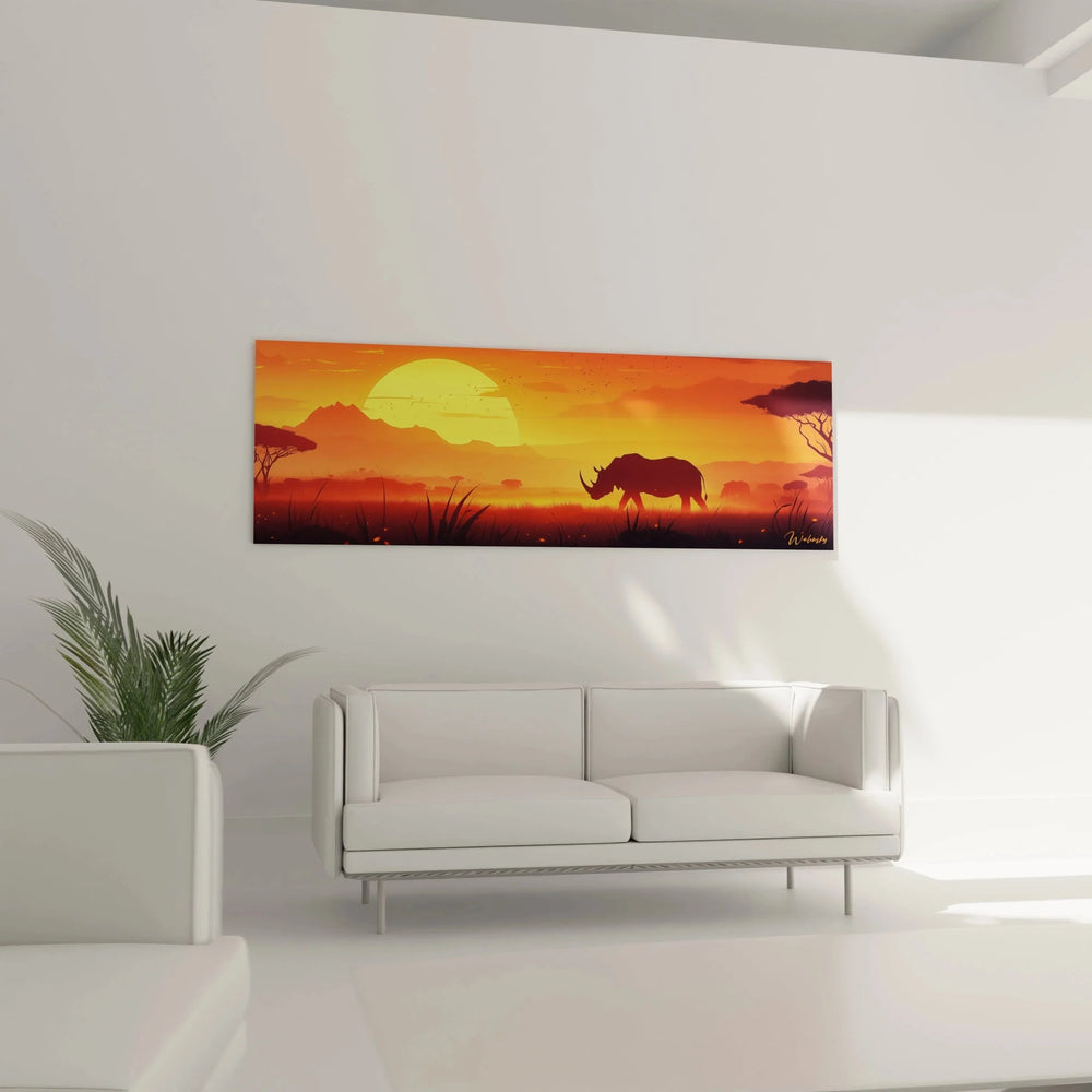 Wandbild Nashorn Sonnenuntergang - Afrikanische Savanne - Edition Nashorn