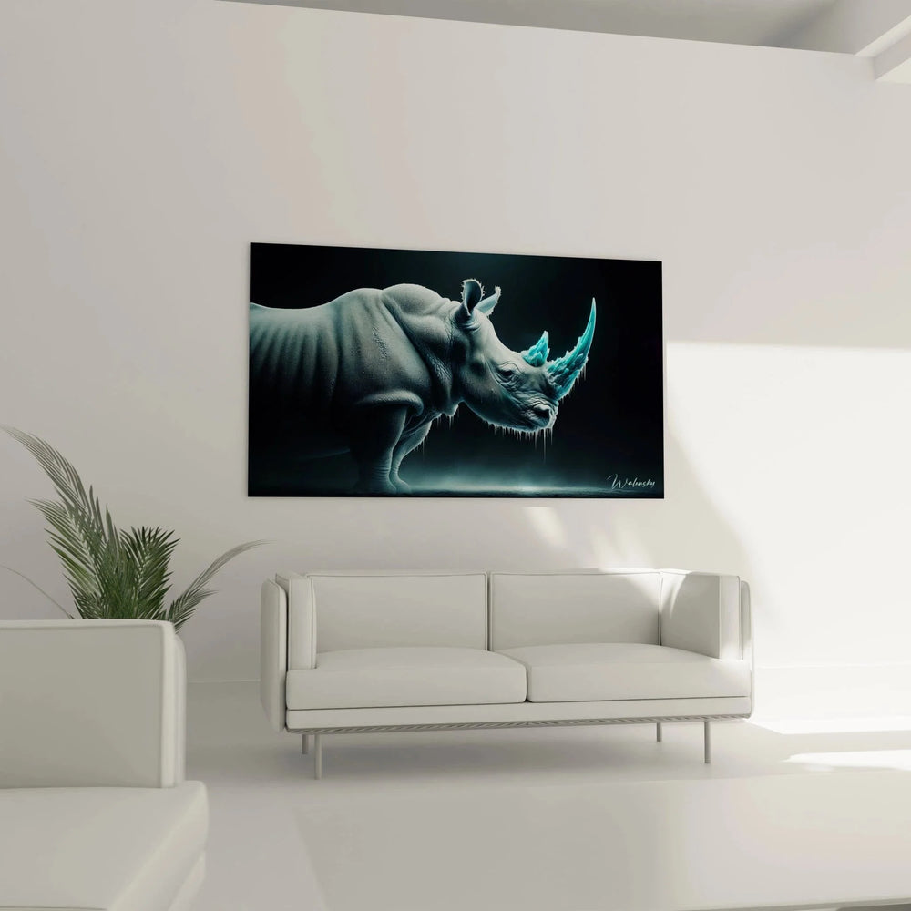 Wandbild Nashorn Türkis - Gefrorenes Krafttier - Edition Nashorn