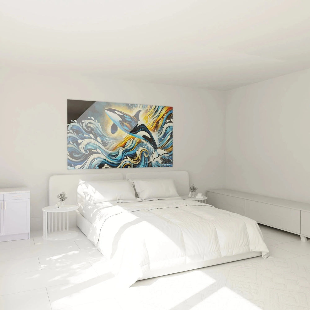 Wandbild Orca Wellen - Majestätischer Sprung durch dynamische Meereswellen - Edition Orca