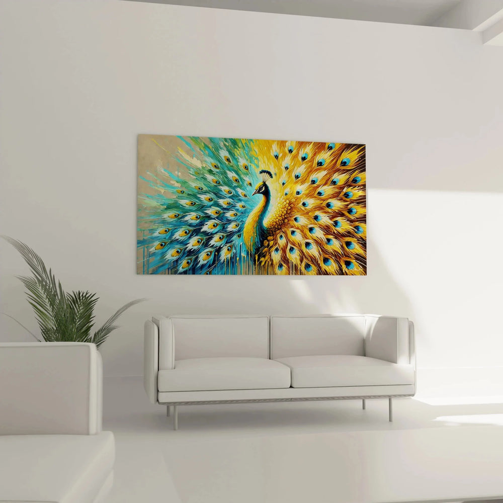 Wandbild Pfau Prachtentfaltung - Goldener Fächertanz - Edition Pfau
