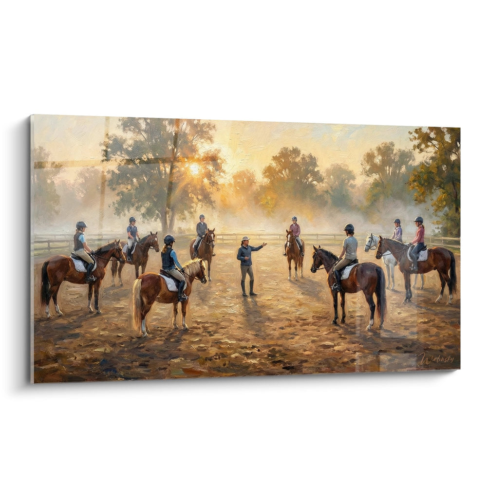 Tags: Reitunterricht, Pferde, Morgenlicht, Reitsport, Wanddekoration