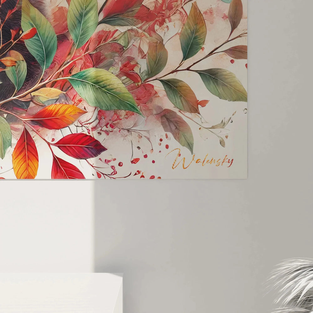 Wandbild Roter Panda in Herbstlaub - Aquarell Botanik - Edition Roter Panda