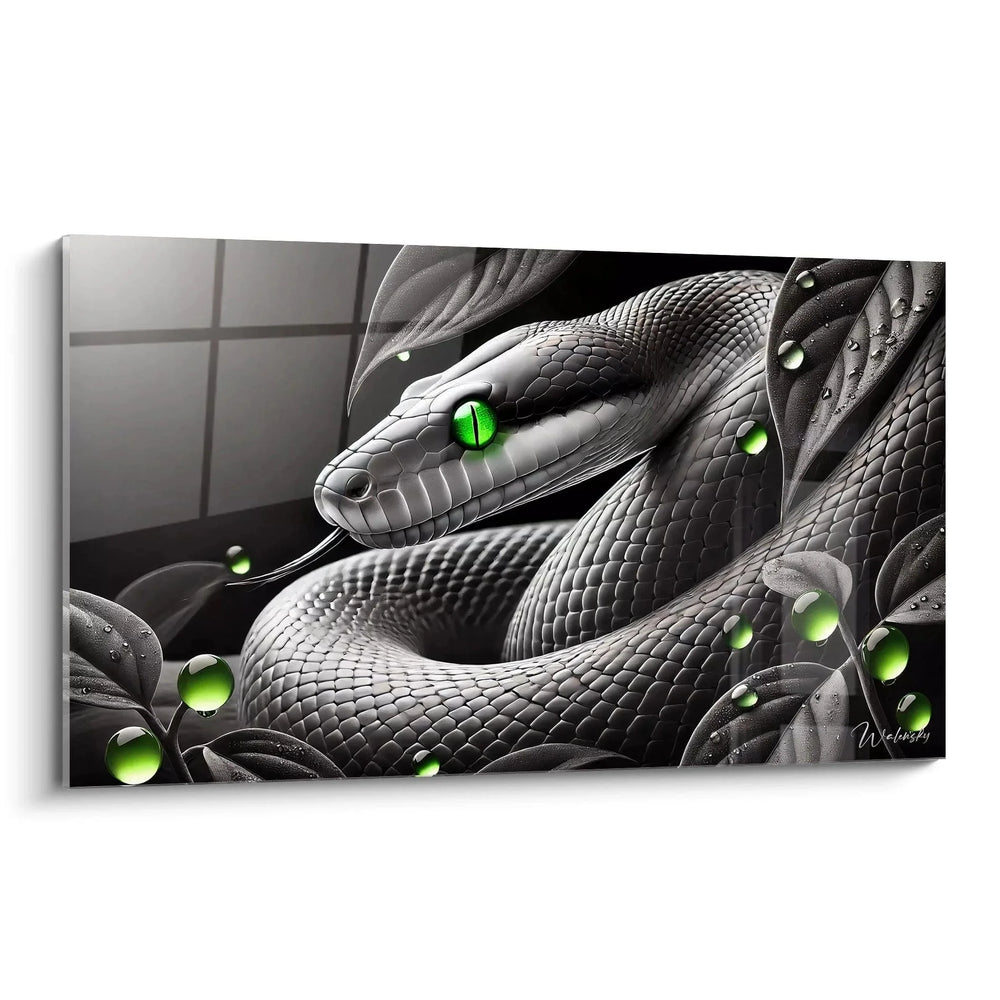 Wandbild Schlange mit grünen Augen - Mystische Eleganz - Edition Schlange