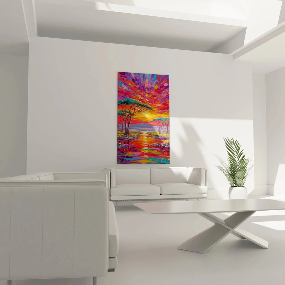 Wandbild Sonnenuntergang Savanne - Afrikanische Bäume im Farbspektakel - Edition Afrikanische Landschaft