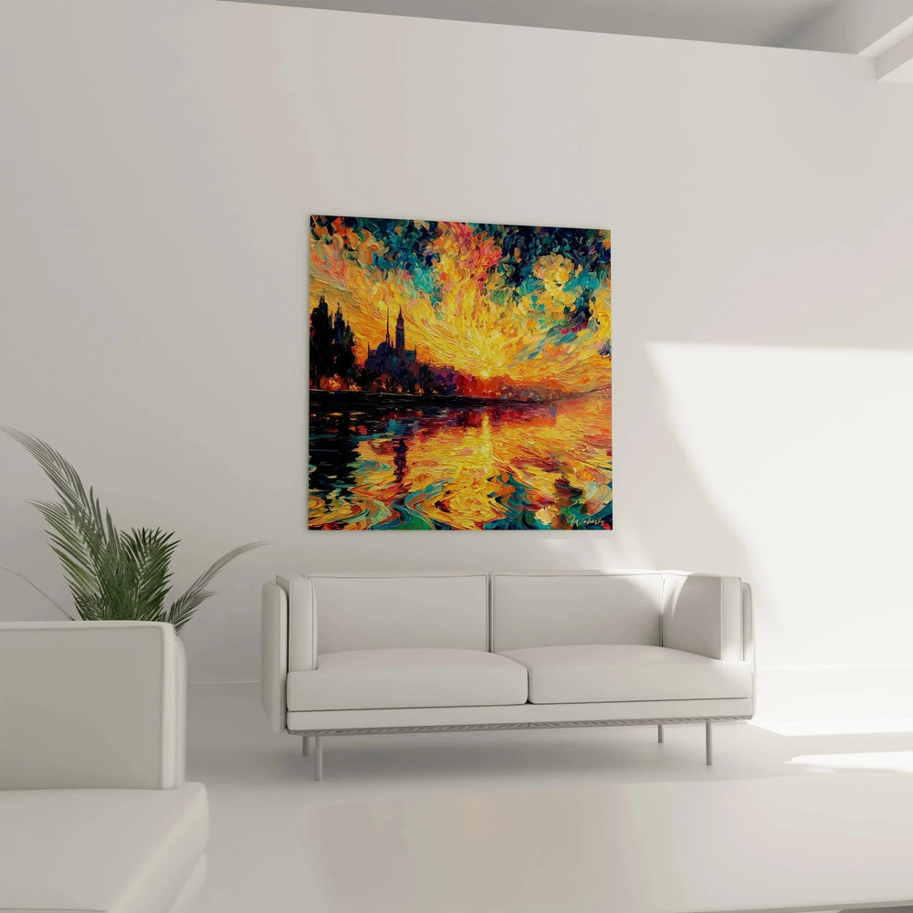Wandbild Sonnenuntergang Venedig - Feurige Reflexionen - Edition Pointillismus