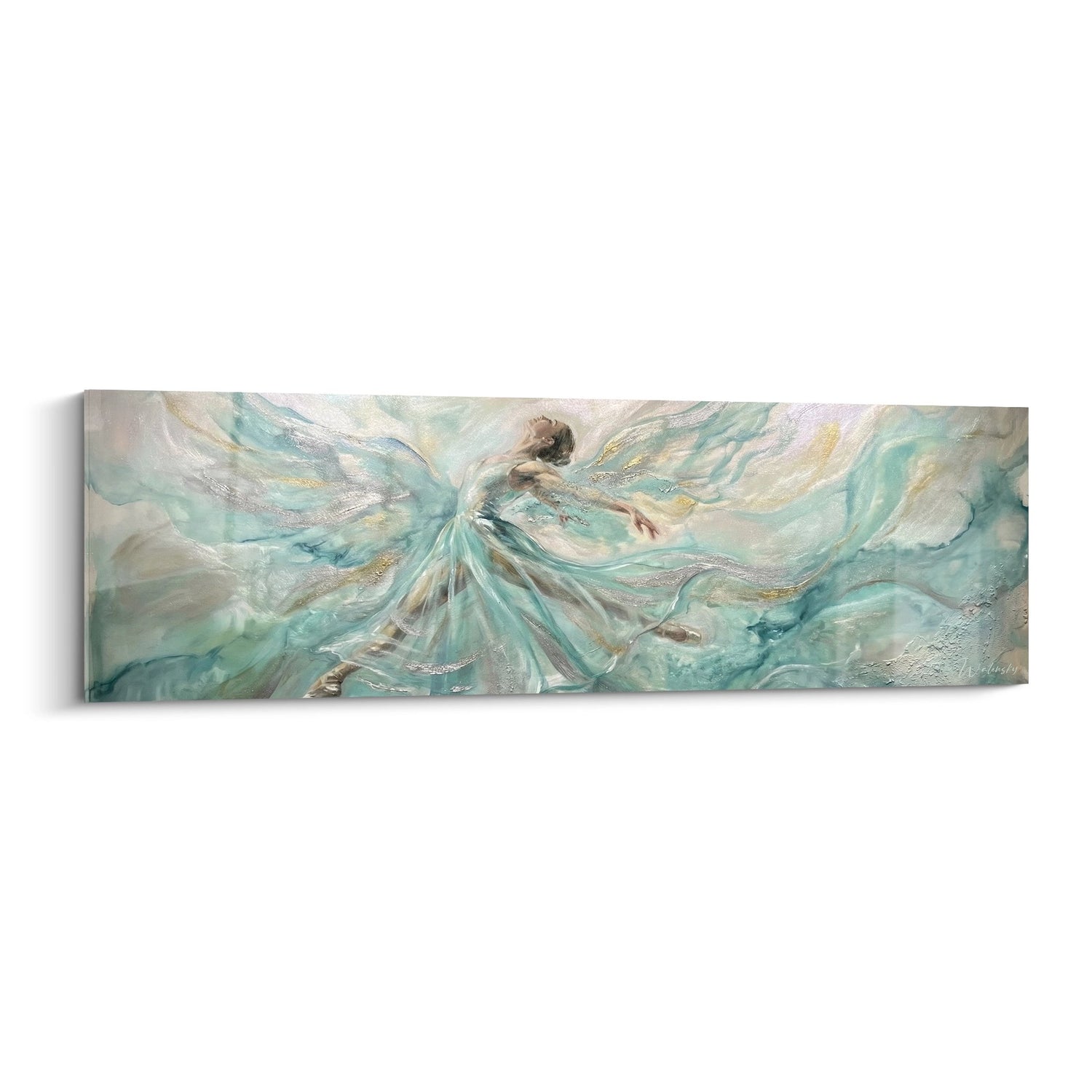 Tags: Tanzkunst, Türkises Wandbild, Tänzerin Gemälde, Bewegungskunst, Impressionistische Malerei