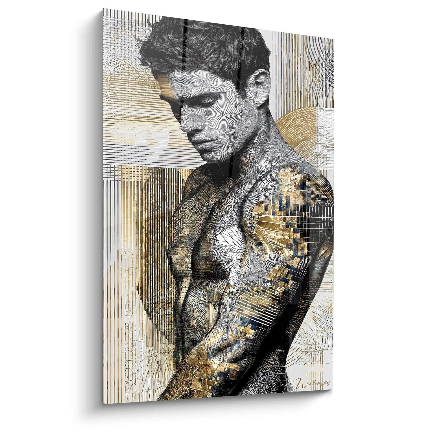 Wandbild Tätowierter Mann - Goldene Geometrie - Edition Männliche Schönheit