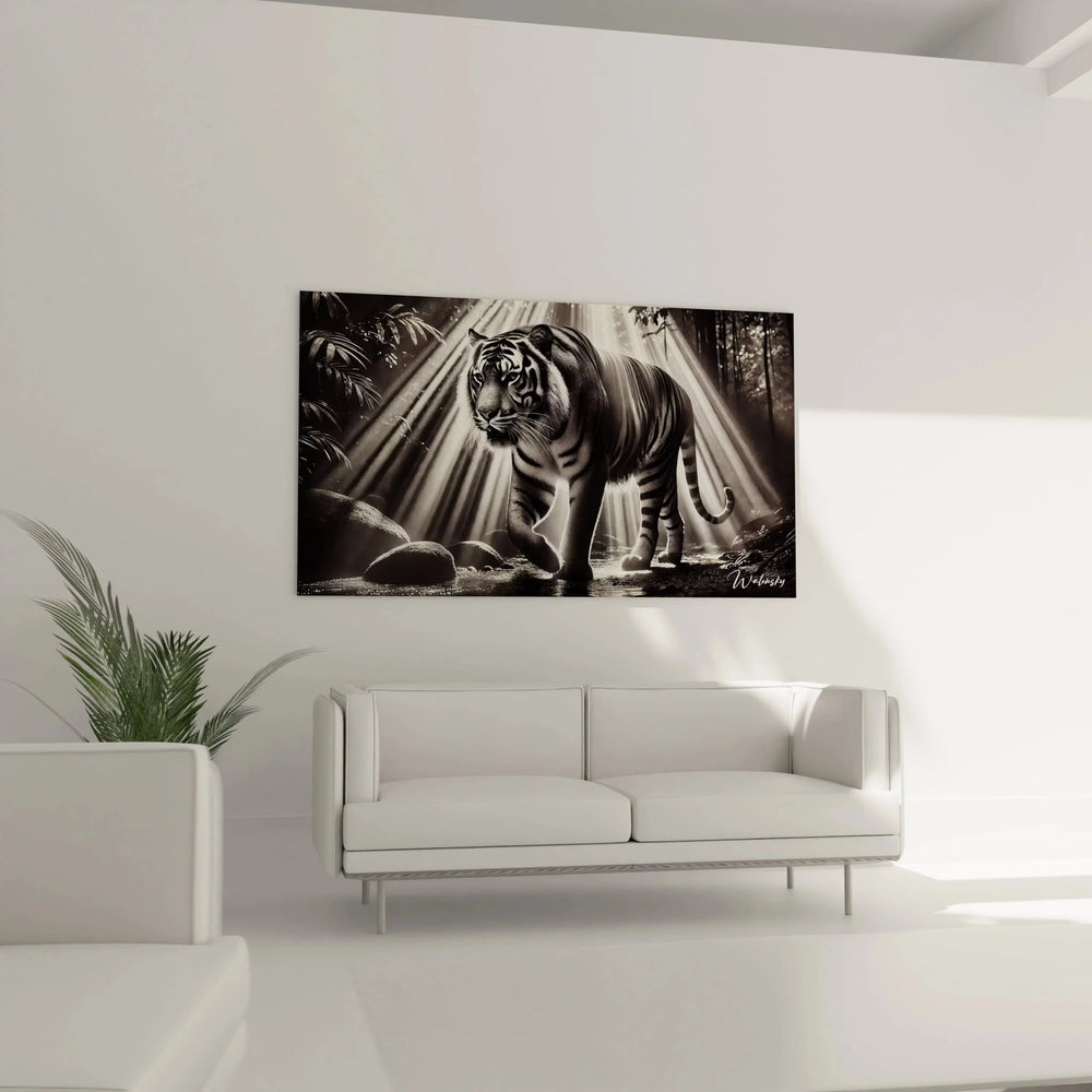 Wandbild Tiger - Majestätischer Raubkatze im Dschungel - Edition Tiere schwarz-weiß