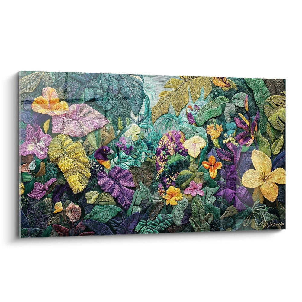 Wandbild Tropischer Dschungel mit bunten Blüten - Paradies der Farben - Edition Häkeloptik