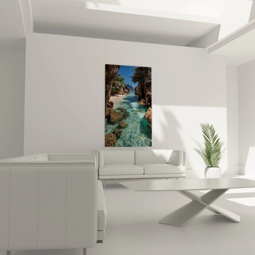 Wandbild Tropischer Strand - Kristallklares Wasser zwischen Granitfelsen - Edition Strand