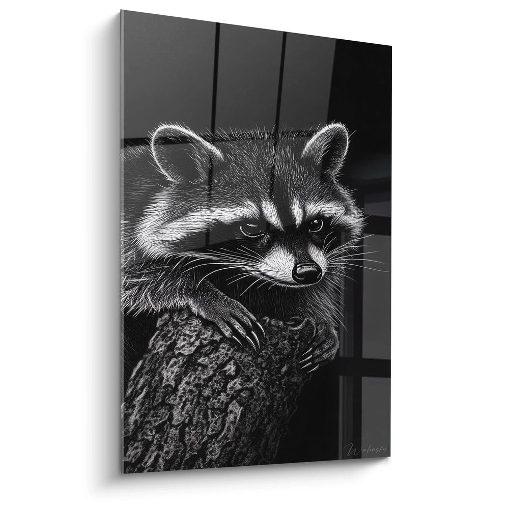 Wandbild Waschbär Schwarz-Weiß - Majestätischer Kletterer - Edition Waschbär