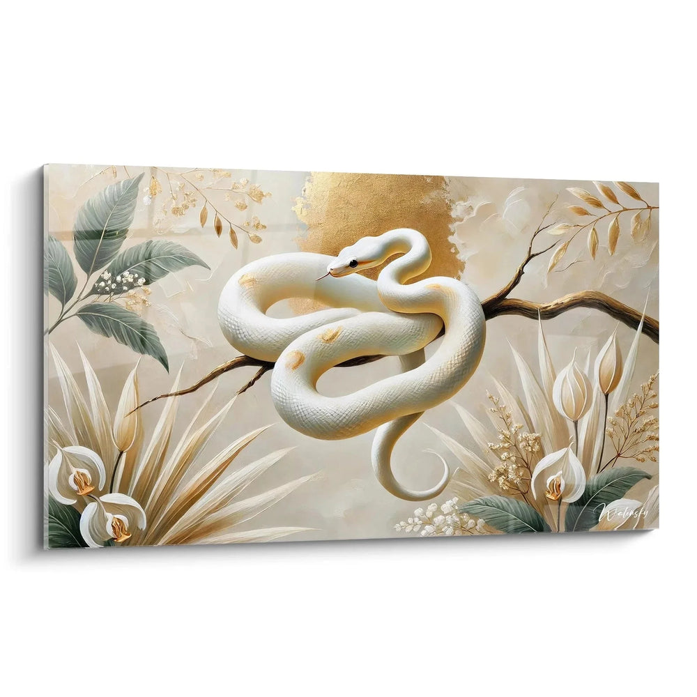 Wandbild Weiße Schlange - Elegante Ruhe in floraler Umgebung - Edition Schlange