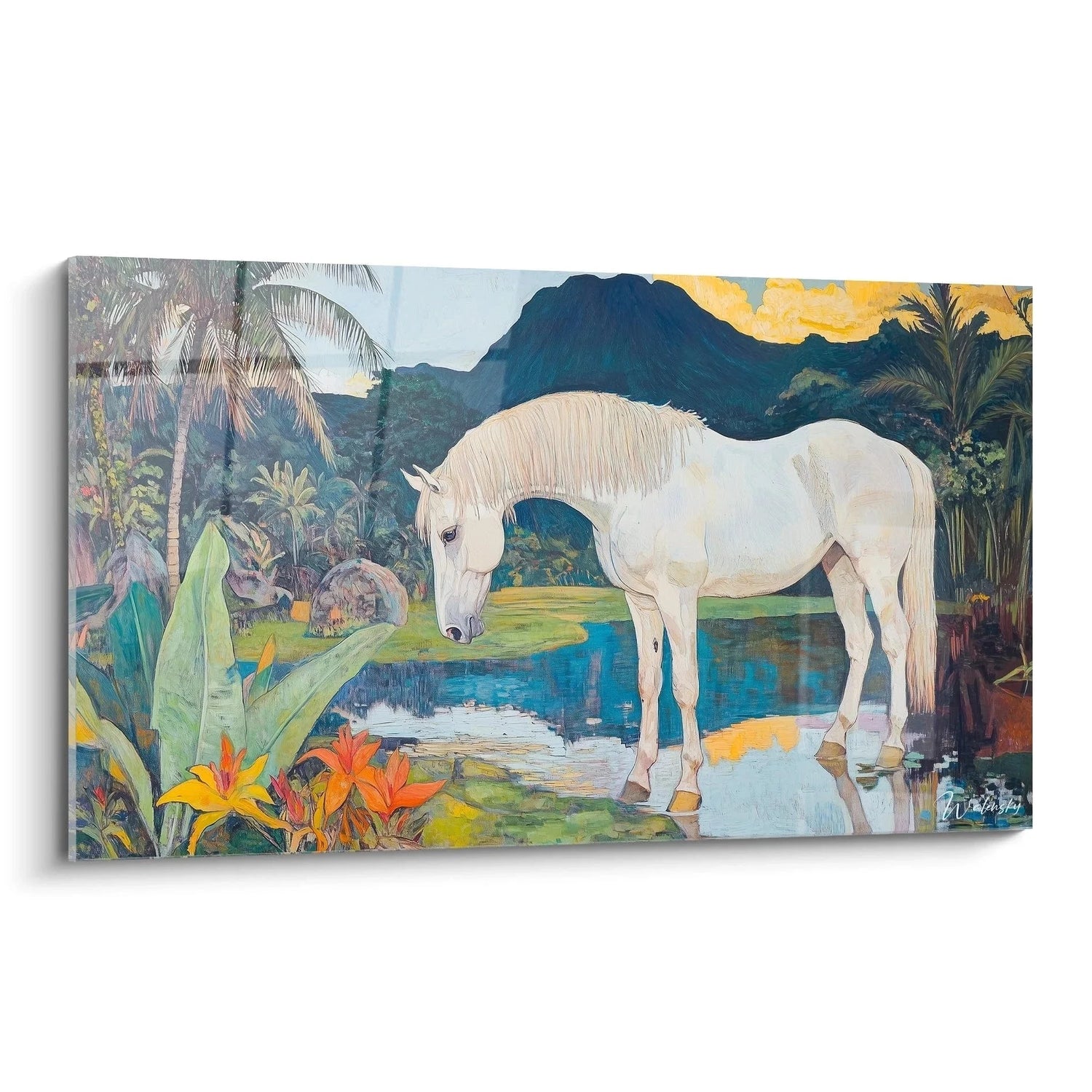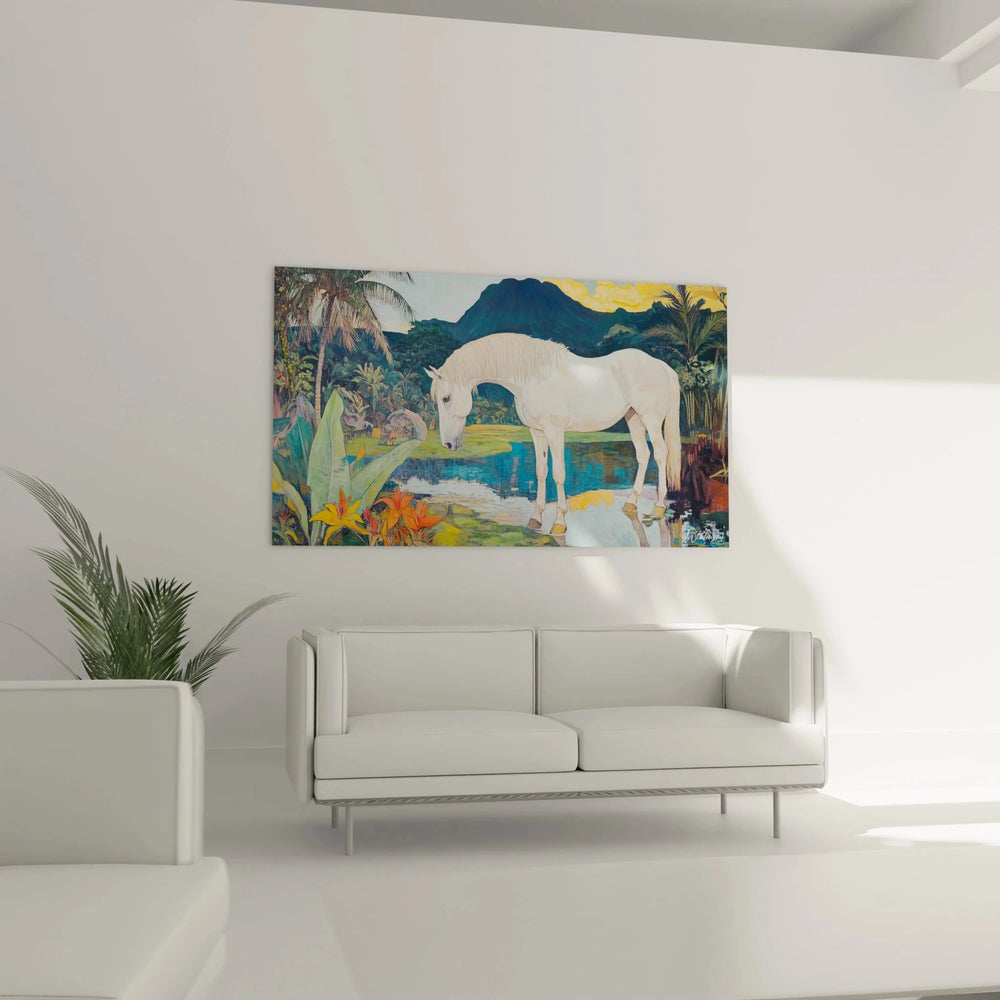 Wandbild weißes Pferd in tropischer Landschaft - Das weiße Ross im Paradies - Edition Wandbild Paul Gauguin